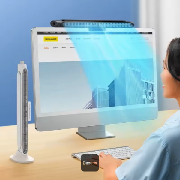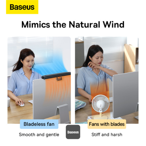 BASEUS Refreshing Monitor Clip-On & Stand-Up Fan Summer Stepless Adjustment Wind Speed Desktop Bladeless Fan - White