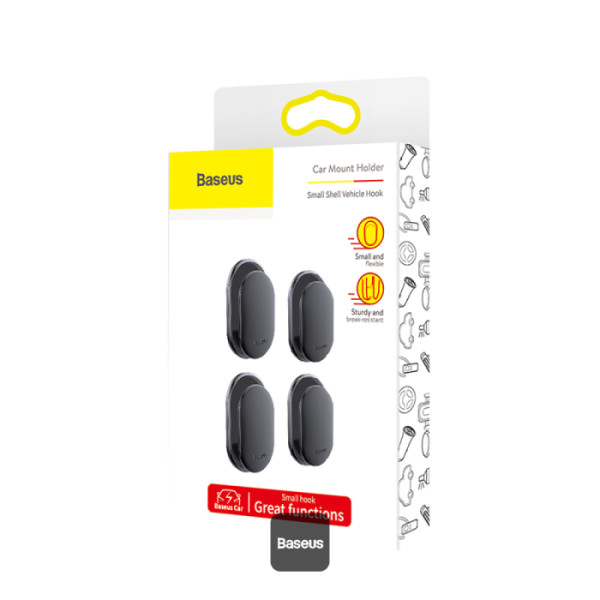 Baseus Small Shell Hook - Durable Hanger For Car, Home, Garage (4 pcs. in a set) - Black