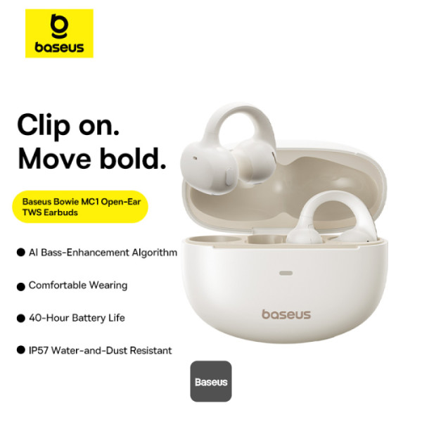 Experience freedom and awareness with the Baseus Bowie MC1 Open-Ear Clip-On Headphones. Designed for active lifestyles, the C-shaped open-ear design ensures comfort, safety, and ambient awareness—perfect for running, cycling, or urban travel. These ultra-light 5.2g earbuds deliver immersive bass through AI-enhanced tuning, 10mm drivers, and a directional anti-leak structure. With Bluetooth 5.4, enjoy seamless connections, while IP57 water and dust resistance keeps your sound flowing through workouts and weather. A powerful 40-hour battery and anti-fall 4-point grip ensure non-stop music wherever you go.