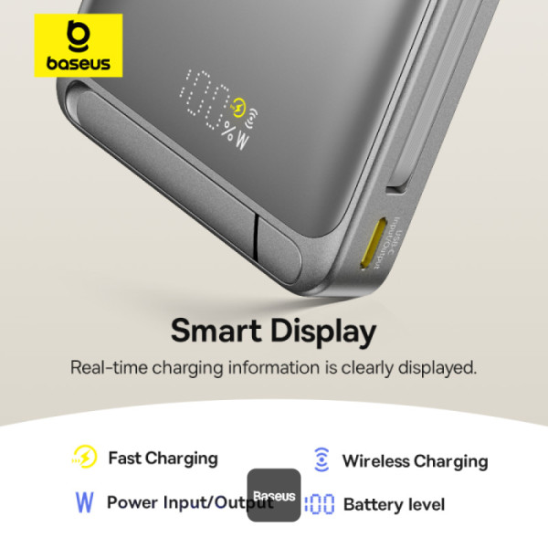 Baseus Nomos 3-in-1 10000mAh Power Bank with Qi2, 15W Wireless Charging