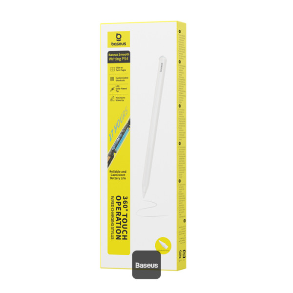 Baseus Smooth Writing Stylus PS4 – 360° Touch, Wired Charging, Tilt & Palm Rejection - White
