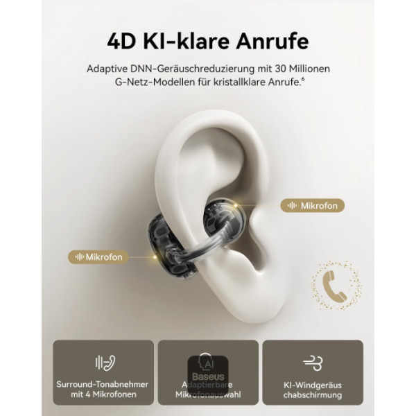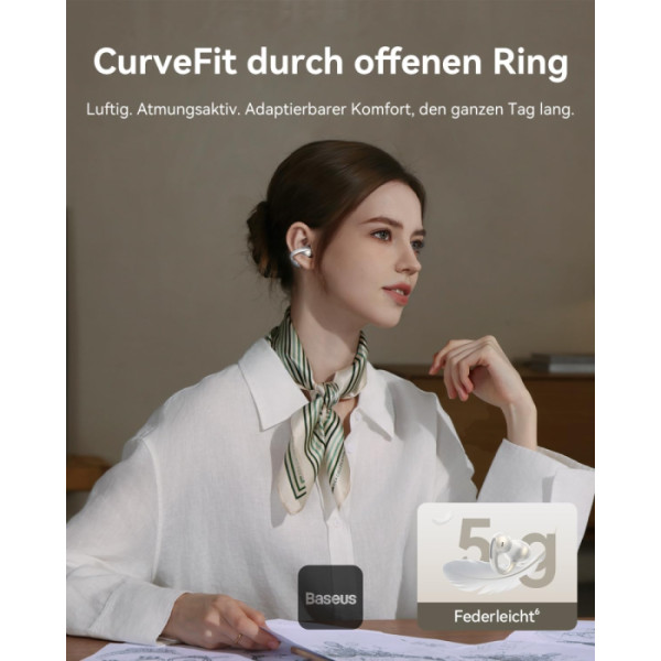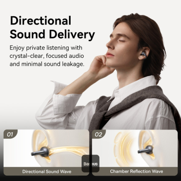 Experience a new level of comfort and awareness with the Bowie MC1 Pro Open-Ear TWS Earbuds from Baseus. Designed for active lifestyles, these ultra-lightweight clip-on earbuds feature an open-ear design that delivers immersive Hi-Res audio while keeping you aware of your surroundings.