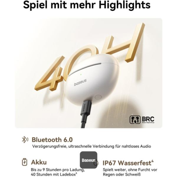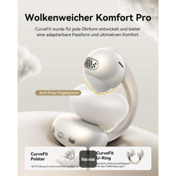 Baseus Bowie MC1 Pro Open-Ear TWS Earbuds Bluetooth 6.0 Hi-Res Audio IP67 Waterproof 40H Playtime - Stellar White